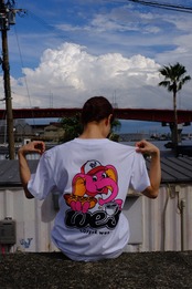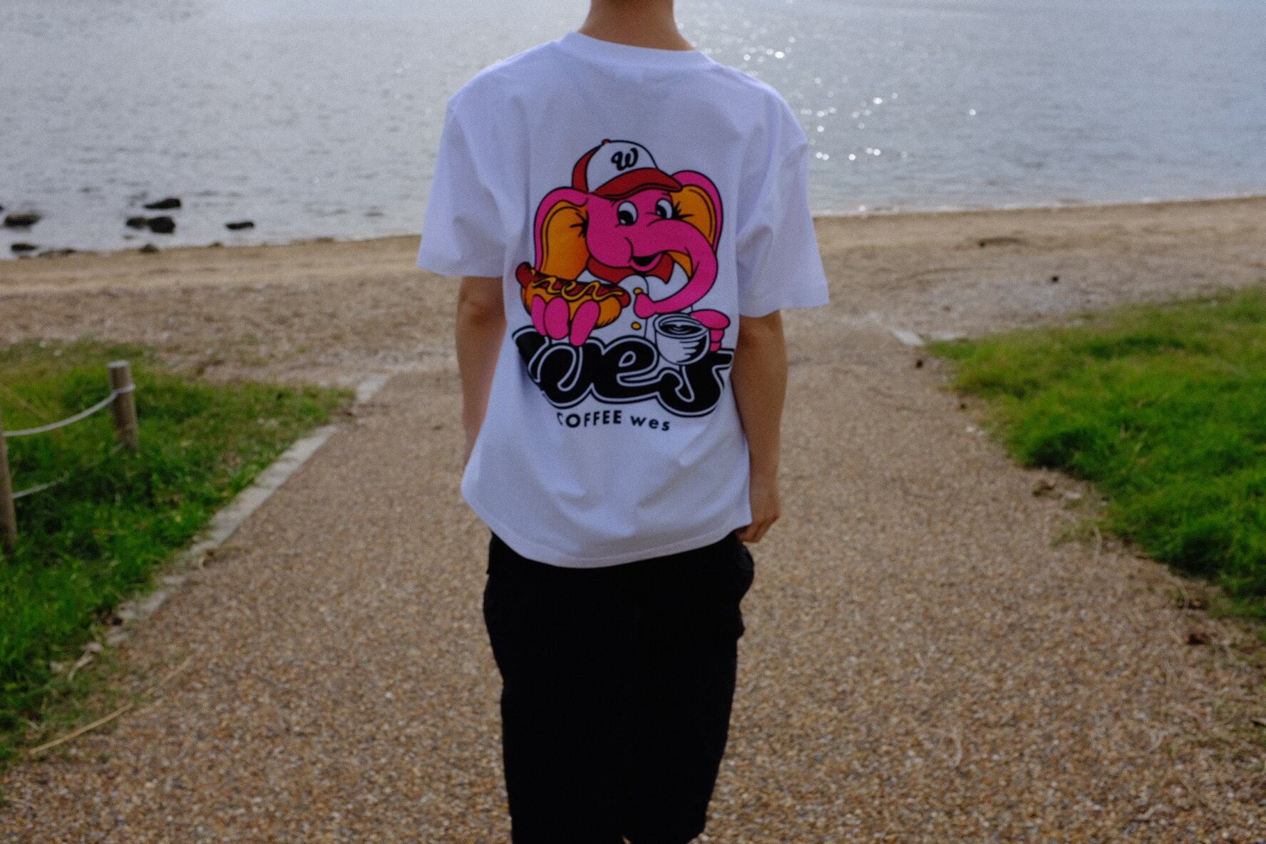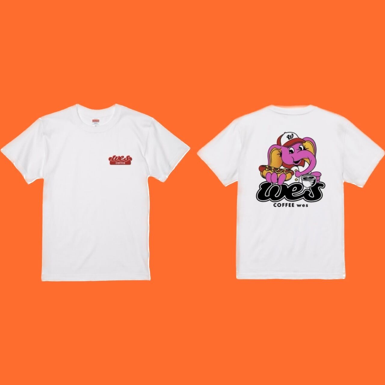 ◉Design:フロントにはNEWブランドロゴ、バックはコーヒーとホットドッグを楽しむゾウさん。